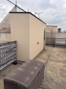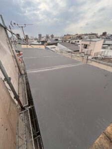 屋上防水工事も完了し、防水層が均一に形成されたことで、雨水の侵入を防ぐ安心の状態に。