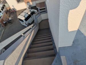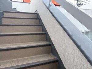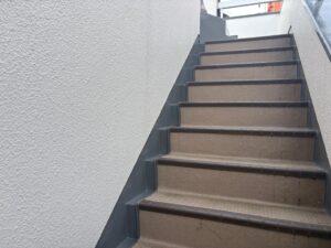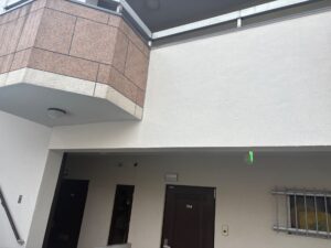 防水工事とあわせて外壁の塗り替えも行いました。外壁塗装は建物の見た目をきれいにするだけでなく、雨風や紫外線から建物を守る大切な役割があります。塗膜が劣化すると防水性能が低下するため、定期的な塗り替えにより建物全体の耐久性を高めることができます。
